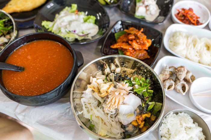 - 회덮밥: 다양한 바다 생선과 신선한 채소, 고추장 양념이 어우러지는 꿀 조합.